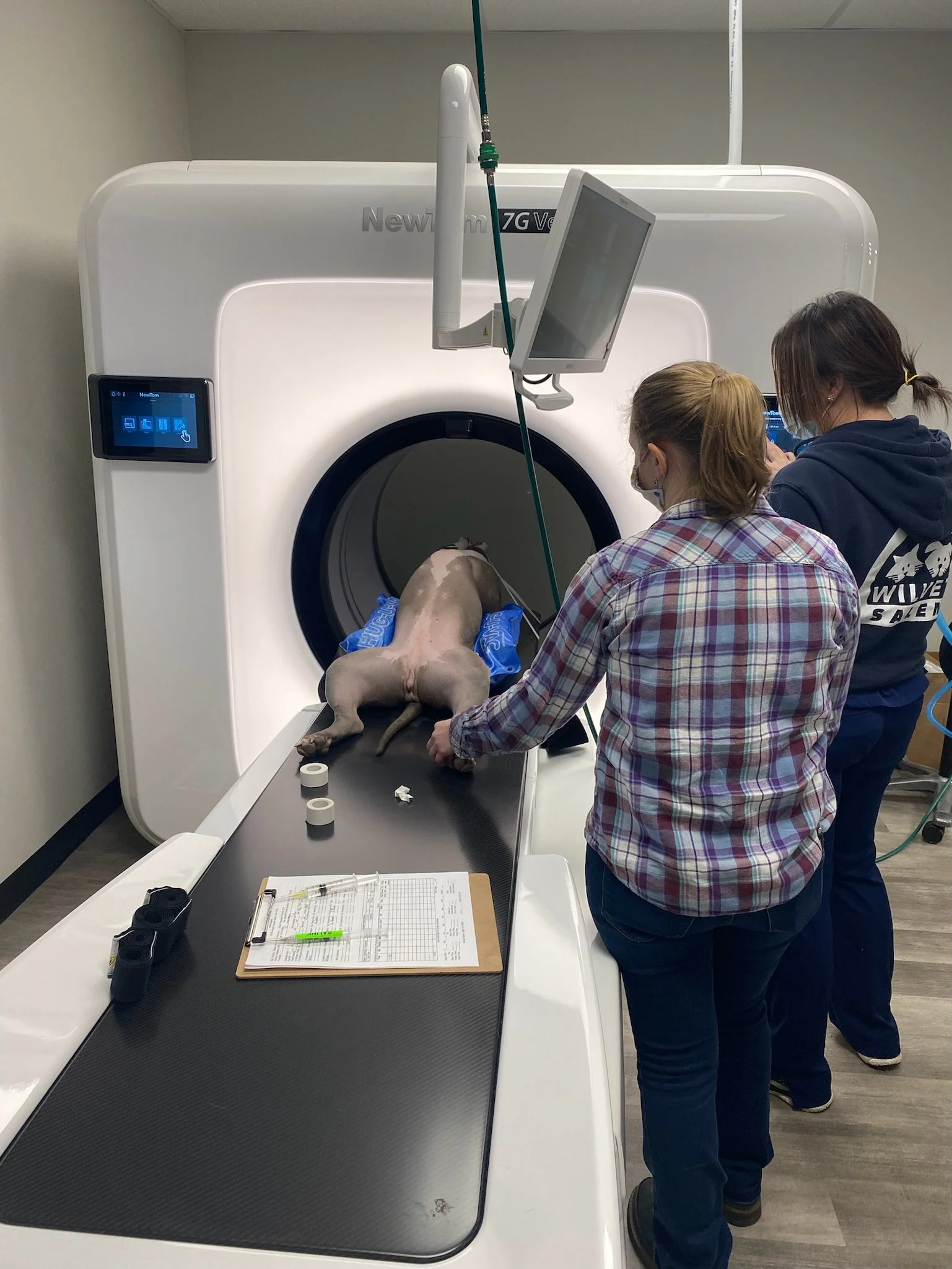 The NewTom 7G is our most technologically advanced flat panel CT system, capable of generating a full-body scan in under one minute. This system includes the largest field-of-view, 3x better image quality than standard flat panel systems, and the best spatial resolution on the market at 90 μ or 0.09 mm. The large bore makes scanning and positioning easy for even the largest breeds.